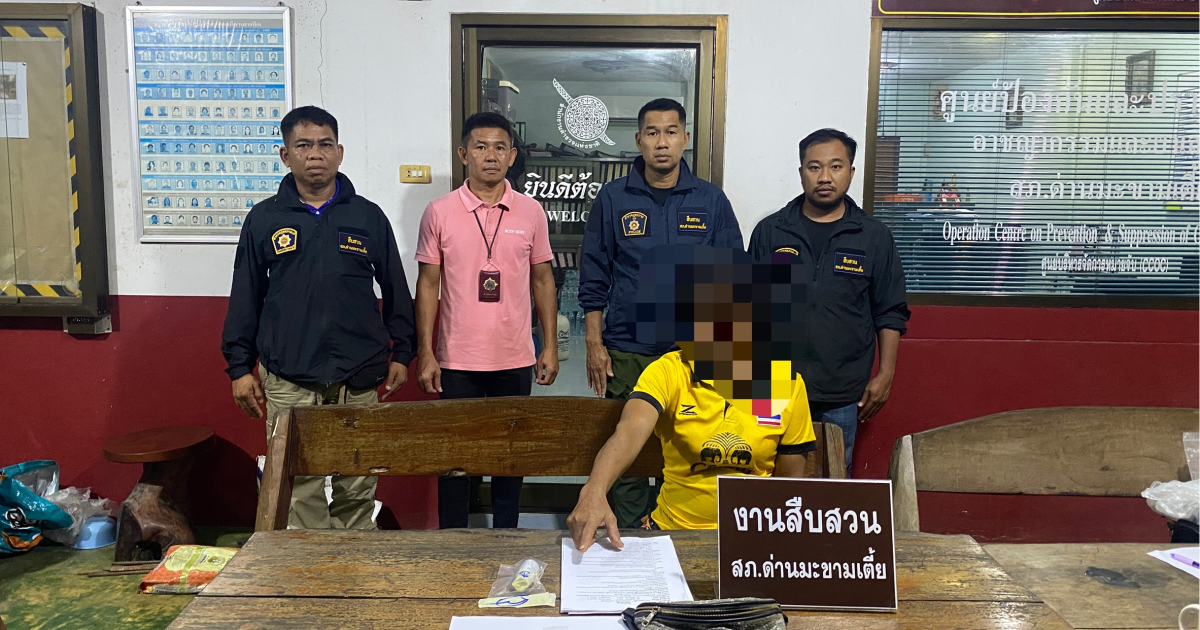 (วันนี้ 15 พ.ย.67 เวลาประมาณ 12.30 น. ภายใต้การอำนวยการของ พ.ต.อ.อำนาจ เอี่ยมใจดี ผกก.สภ.ด่านมะขามเตี้ย,พ.ต.ท.อุบล บุญสุริยาธรรม รอง ผกก.สส.สภ.ด่านมะขามเตี้ย, พ.ต.ต.วัชระ ชาบุตรบุณฑริก สว.สส.สภ.ด่านมะขามเตี้ย นำโดย ร.ต.อ.บัณฑิต ทองลิ้ม รอง สว.อก.สภ.ด่านมะขามเตี้ย เจ้าพนักงาน ป.ป.ส.6606100พร้อมกำลังชุดสืบสวนร่วมกันจับกุมตัว น.ส.น้ำอ้อย หรืออ้อย ทองคำ อายุ 51 ปี เลขบัตรประจำตัวประชาชน 2-7101-00018-42-4 บ้านเลขที่ 94 ม.8 ต.ด่านมะขามเตี้ย ต.ด่านมะขามเตี้ย จ.กาญจนบุรี)