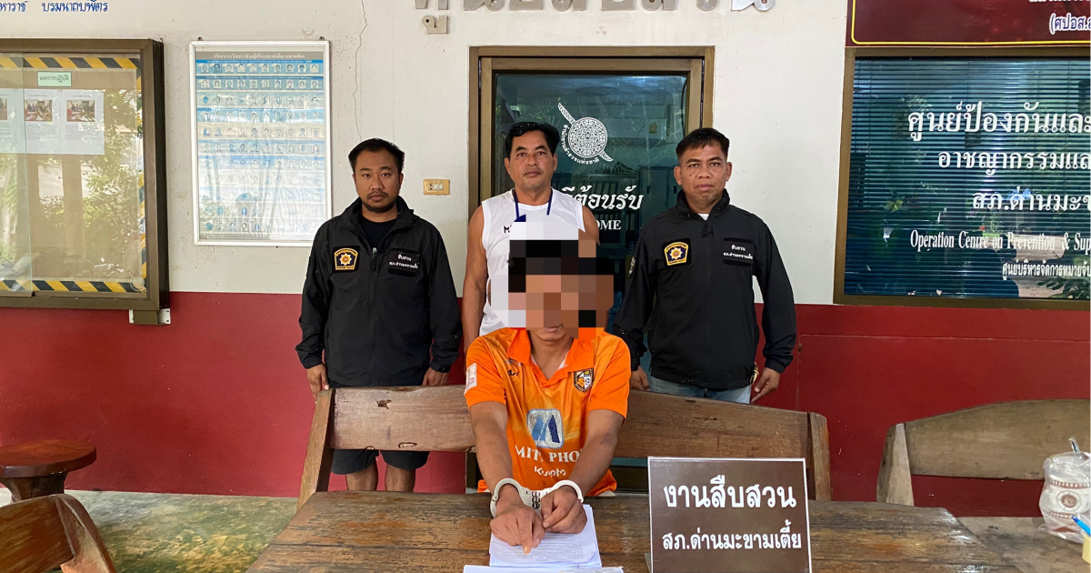 (วันนี้ (10 ต.ค.67) เวลาประมาณ 12:00 น. ภายใต้การอำนวยการของ พ.ต.อ.อำนาจ เอี่ยมใจดี ผกก.สภ.ด่านมะขามเตี้ย,พ.ต.ท.อุบล บุญสุริยาธรรม รอง ผกก.สส.สภ.ด่านมะขามเตี้ย, พ.ต.ต.วัชระ ชาบุตรบุณฑริก สว.สส.สภ.ด่านมะขามเตี้ย นำโดย ร.ต.อ.นที เกษมวิริยนนท์ รอง สวป.สภ.ด่านมะขามเตี้ย เจ้าพนักงาน ป.ป.ส.6606101 พร้อมกำลังชุดสืบสวนร่วมกันจับกุมตัว นายสุชาติ ชาวไร่เหนือ อายุ 28 ปี เลขประจำตัวประชาชน 1-7111-00017-61-7 ที่อยู่ 306 หมู่ 3 ตำบลหนองไผ่ อำเภอด่านมะขามเตี้ย จังหวัดกาญจนบุรี)