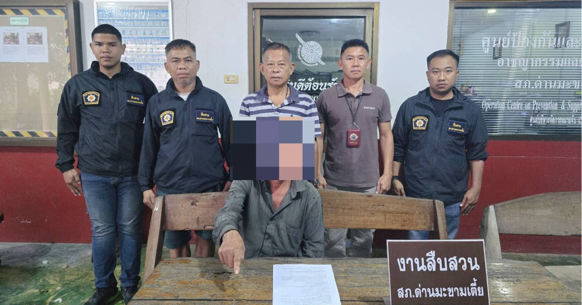(วันนี้ 28 พ.ย.67 เวลาประมาณ 16.00 น. ภายใต้การอำนวยการของ พ.ต.อ.อำนาจ เอี่ยมใจดี ผกก.สภ.ด่านมะขามเตี้ย,พ.ต.ท.อุบล บุญสุริยาธรรม รอง ผกก.สส.ฯ,พ.ต.ต.วัชระ ชาบุตรบุณฑริก สว.สส.สภ.ด่านมะขามเตี้ย นำโดย ร.ต.อ.บัณฑิต ทองลิ้ม รอง สว.อก.สภ.ด่านมะขามเตี้ย เจ้าพนักงาน ป.ป.ส.6606100 พร้อมกำลังชุดสืบสวนร่วมกันจับกุมตัว นายศรีวงศ์ แก้วสุภา อายุ 61 ปี เลขบัตรประจำตัวประชาชน 3-5201-01099-48-7 ที่อยู่ 179 ม.4 ต.ด่านมะขามเตี้ย อ.ด่านมะขามเตี้ย จ.กาญจนบุรี )