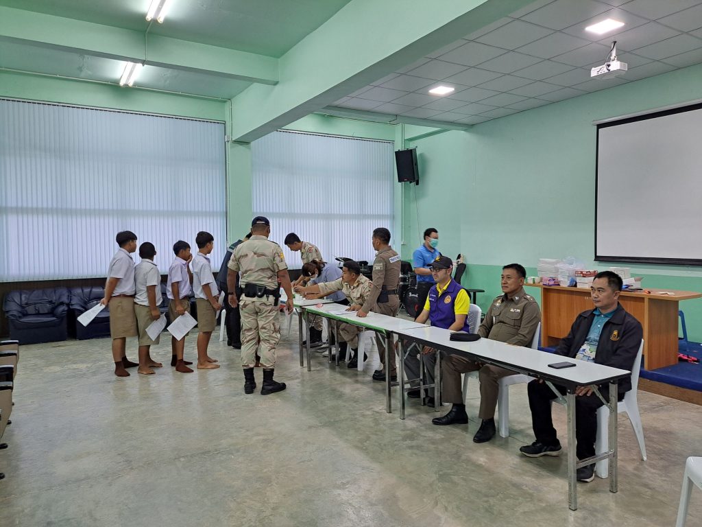 เมื่อวันที่ 8 พ.ย. 67 เวลา 09.00 น. พ.ต.ท.สมันฎ์ แพทย์ชีพ สวป.สภ.ด่านมะขามเตี้ย พร้อมด้วยสายตรวจรถยนต์ สายตรวจรถจักรยานยนต์ ตำรวจประสานโรงเรียน ปลัดอำเภอ และ จนท. อส. อำเภอด่านมะขามเตี้ย ร่วมตรวจปัสสาวะเพื่อหาสารเสพติดนักเรียน ตามโครงการสถานศึกษาสีขาว ณ โรงเรียนด่านมะขามเตี้ยวิทยาคม