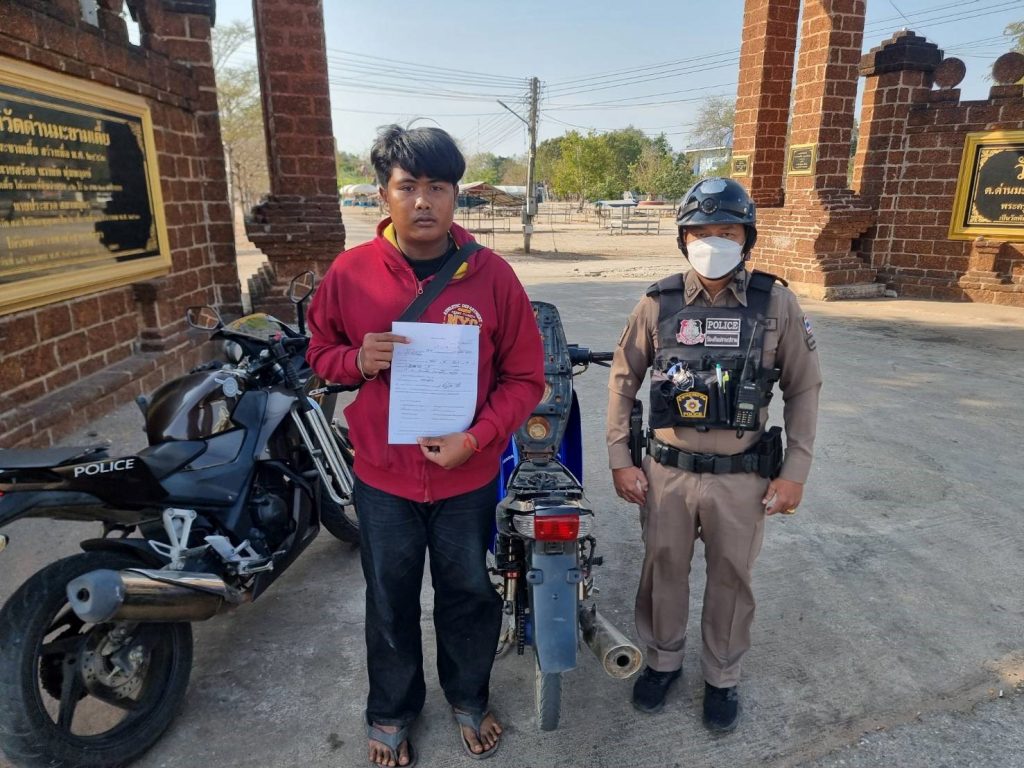 เมื่อวันที่ 22 ธ.ค. 67 เวลา 11.10 น. ด.ต.กฤติภัท มินจันทึก ผบ.หมู่ ป.สภ.ด่านมะขามเตี้ย ปฏิบัติหน้าที่สายตรวจรถจักรยานยนต์ ตรวจยึดรถจักรยานยนต์ ไม่ติดแผ่นป้ายทะเบียนและไม่มีสำเนาคู่มือรถ บริเวณหน้าวัดด่านมะขามเตี้ย