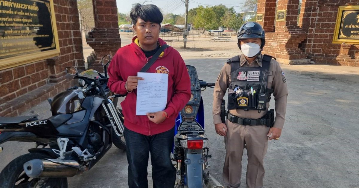 เมื่อวันที่ 22 ธ.ค. 67 เวลา 11.10 น. ด.ต.กฤติภัท มินจันทึก ผบ.หมู่ ป.สภ.ด่านมะขามเตี้ย ปฏิบัติหน้าที่สายตรวจรถจักรยานยนต์ ตรวจยึดรถจักรยานยนต์ ไม่ติดแผ่นป้ายทะเบียนและไม่มีสำเนาคู่มือรถ บริเวณหน้าวัดด่านมะขามเตี้ย