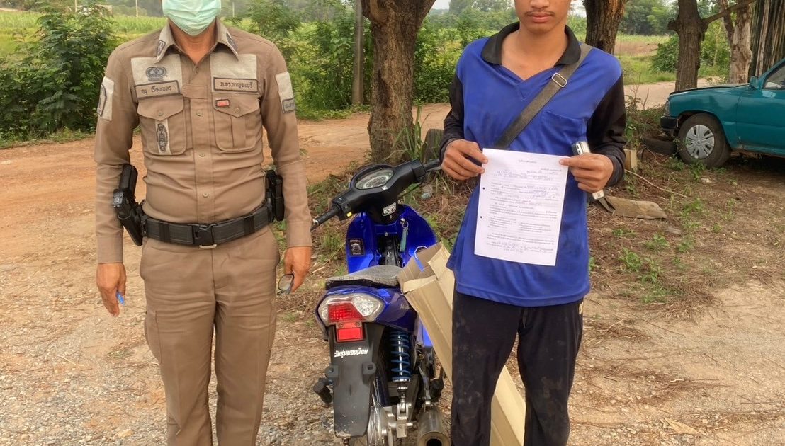เมื่อวันที่ 21 มี.ค. 68 เวลา 17.23 น. ร.ต.อ.อนุ เรืองเนตร รอง สวป.สภ.ด่านมะขามเตี้ย ปฏิบัติหน้าที่ ร้อยเวร 20 พร้อมด้วยสายตรวจรถยนต์ ตรวจยึดรถจักรยานยนต์ ไม่ติดแผ่นป้ายทะเบียนและไม่มีสำเนาคู่มือรถ บริเวณหน้าหน้าอู่ตั้มเซอร์วิส