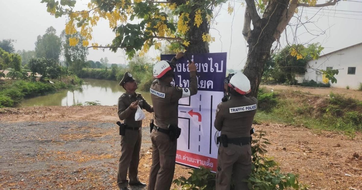 ติดแผ่นป้ายประชาสัมพันธ์ เส้นทางเดินรถในช่วงเทศกาลสงกรานต์ ปี 67