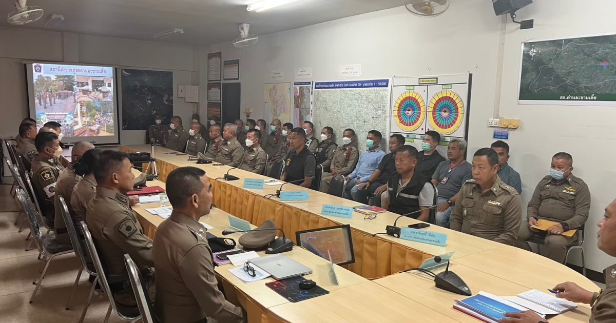 ผู้กำกับการสถานีตำรวจภูธรด่านมะขามเตี้ย ชี้แจงและให้ข้อมูลเกี่ยวกับ การประเมินแก่เจ้าหน้าที่ตำรวจในสถานีตำรวจภูธรด่านมะขามเตี้ย