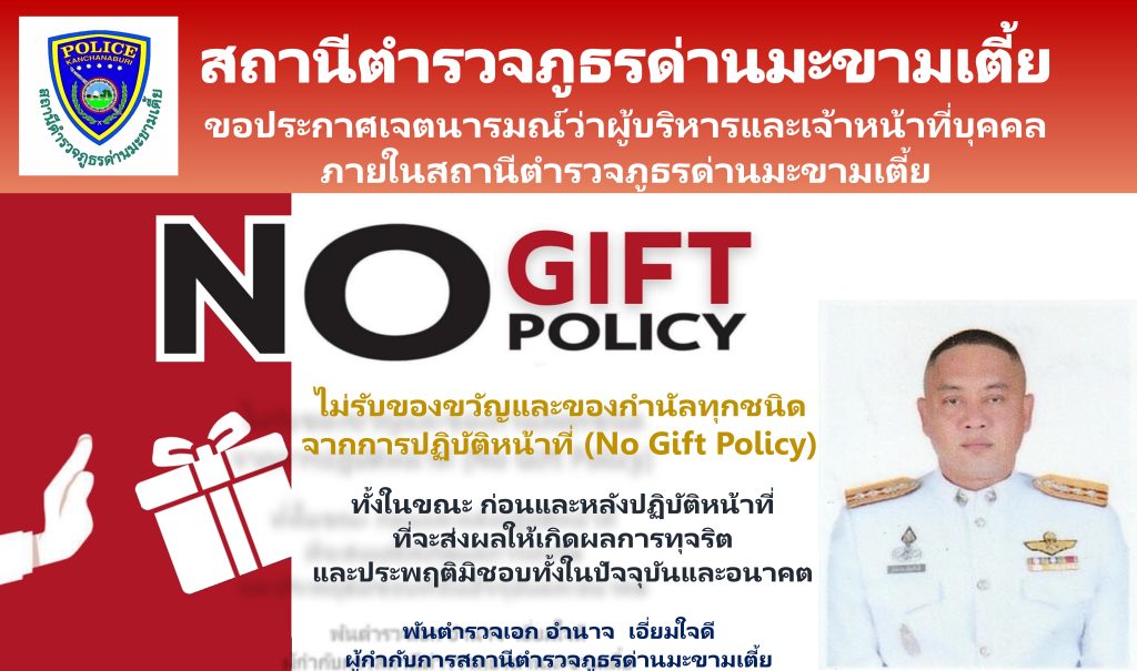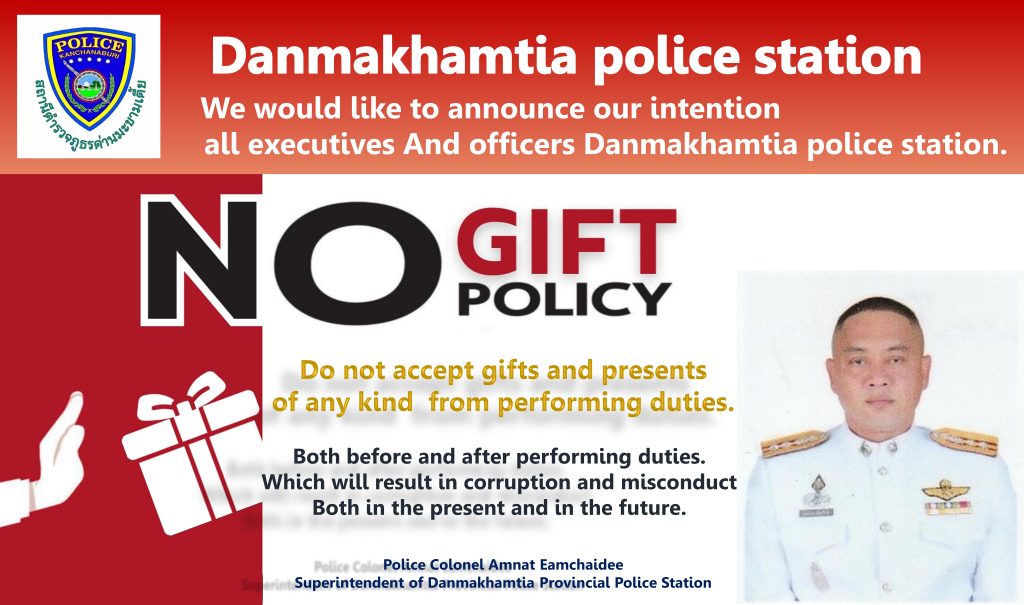 - ประกาศสำนักงานยุทธศาสตร์ตำรวจเรื่องเจตนารมณ์ที่จะไม่รับของขวัญหรือของกำนัลทุกชนิดจากการปฏิบัติหน้าที่
